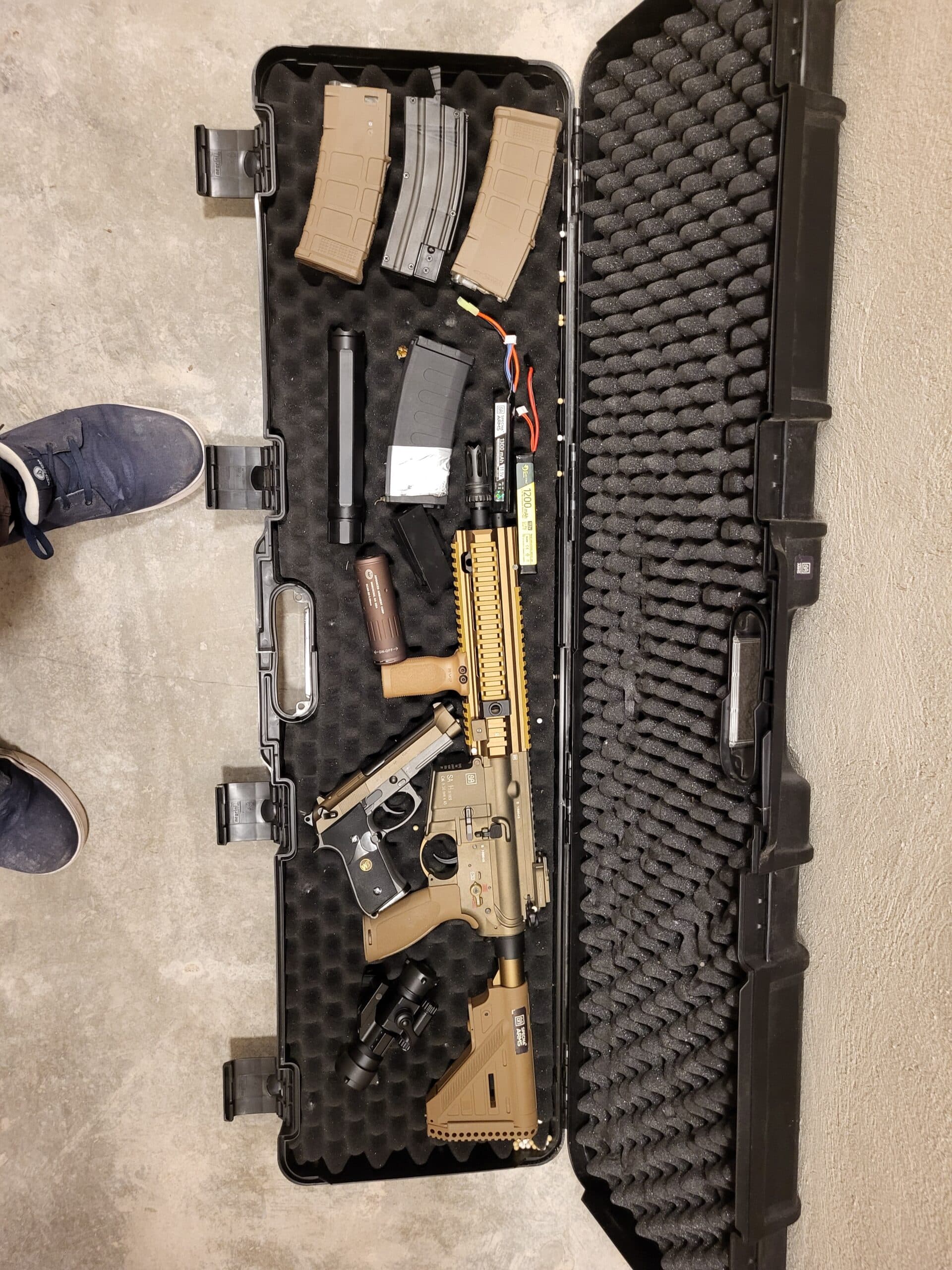 Chacune de ses repliques est vendue avec magasins et batteries il est aussi vendu les sacs de transport malette en plastique dur pour le transport (100fr )