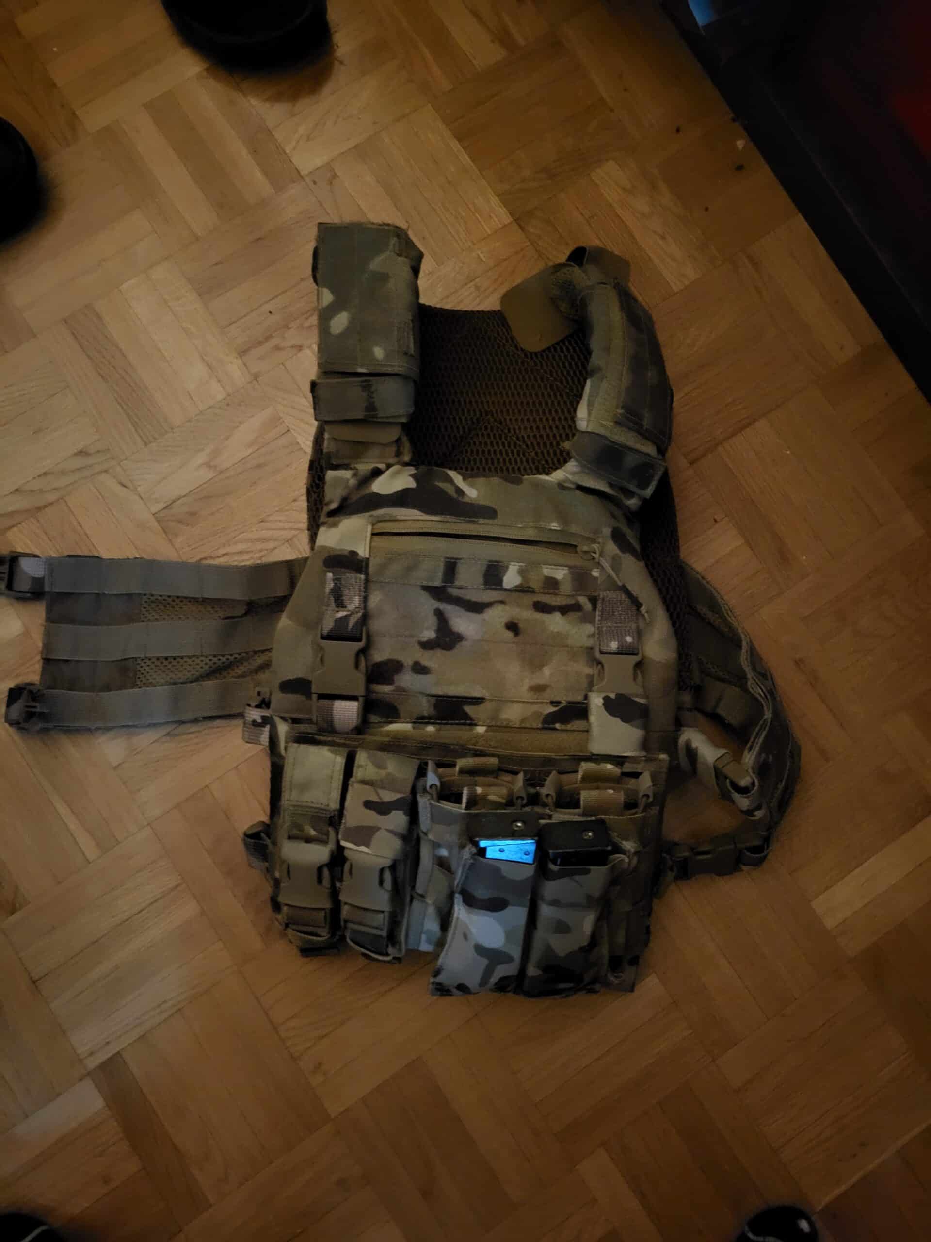 Équipement également en vente il ya un gilet porte plaque camo Tan avec sac a dos multifonction 100f avec tous les équipements qui vont avec